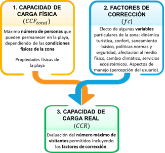 Botero-Saltarén C, Hurtado-García Y, González-Porto J, Ojeda-Manjarrés M, Díaz-Rocca LH. 2008. Metodología de cálculo de la capacidad de carga turística como herramienta para la gestión ambiental y su aplicación en cinco playas del Caribe Norte Colombiano. Gest Amb. 11 (3): 109-122. https://www.redalyc.org/pdf/1694/169420255010.pdf.